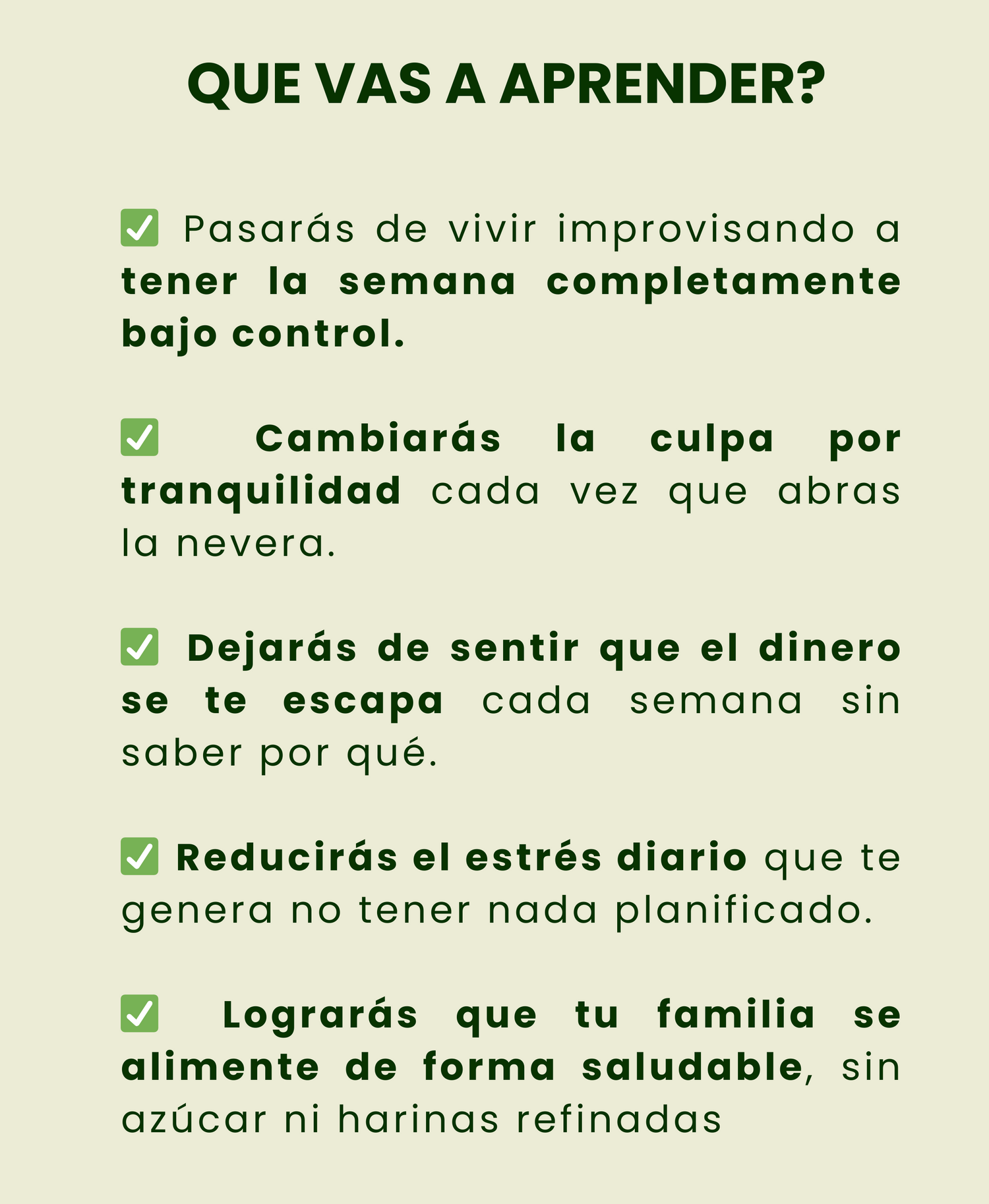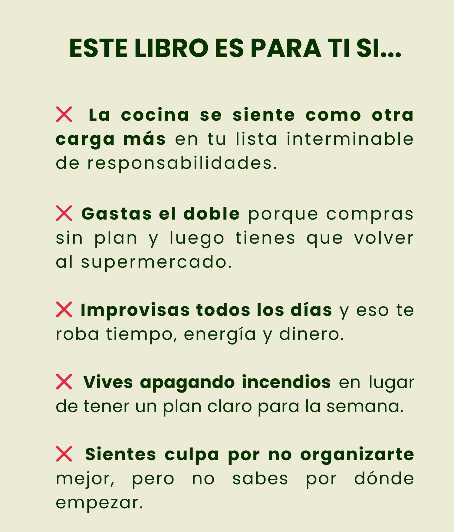 Estamos tan convencidos de que este ebook te va a ayudar a organizarte, cocinar sin estrés y comer saludable de verdad, que queremos que lo pruebes sin ningún riesgo.